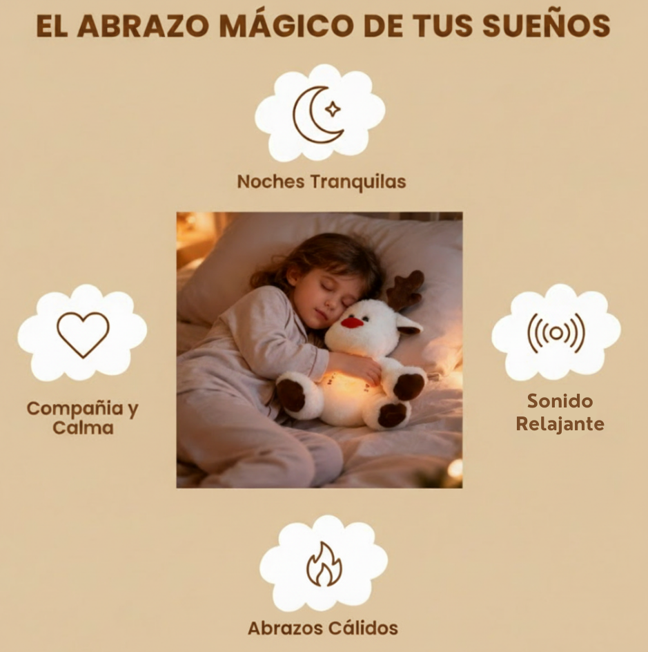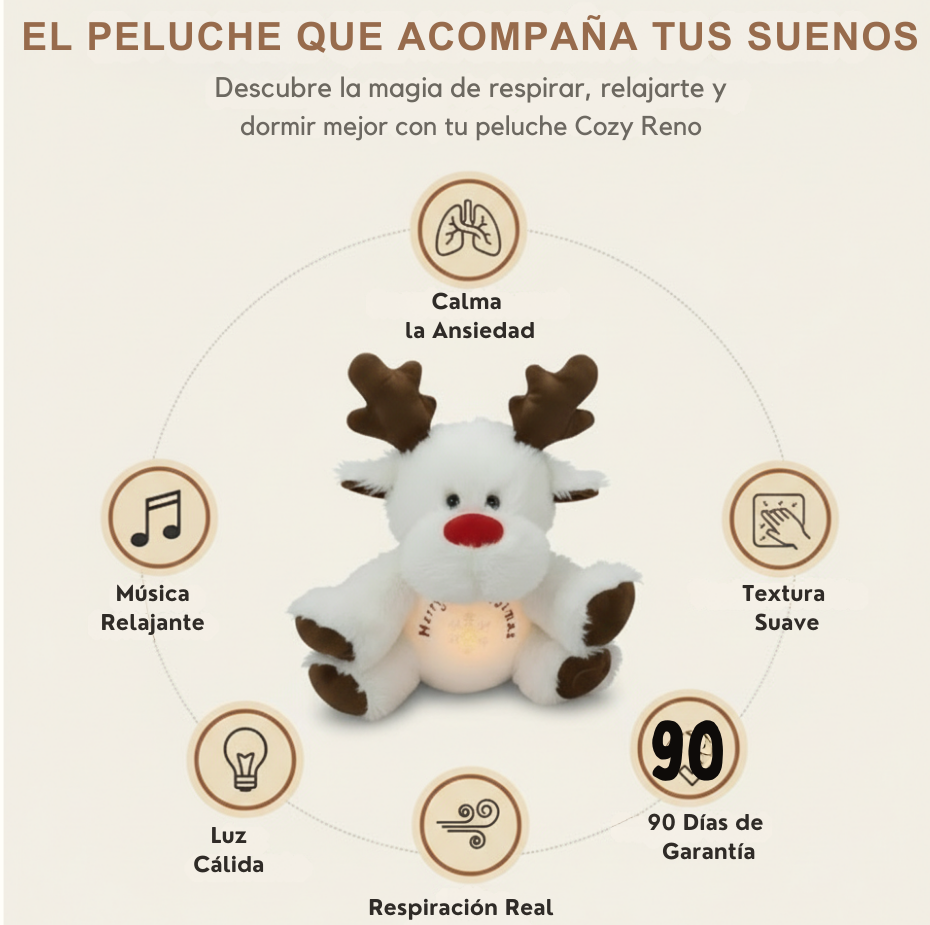 Reno de Peluche Navideño Relajante que Respira con Luz Cálida Anti-Ansiedad